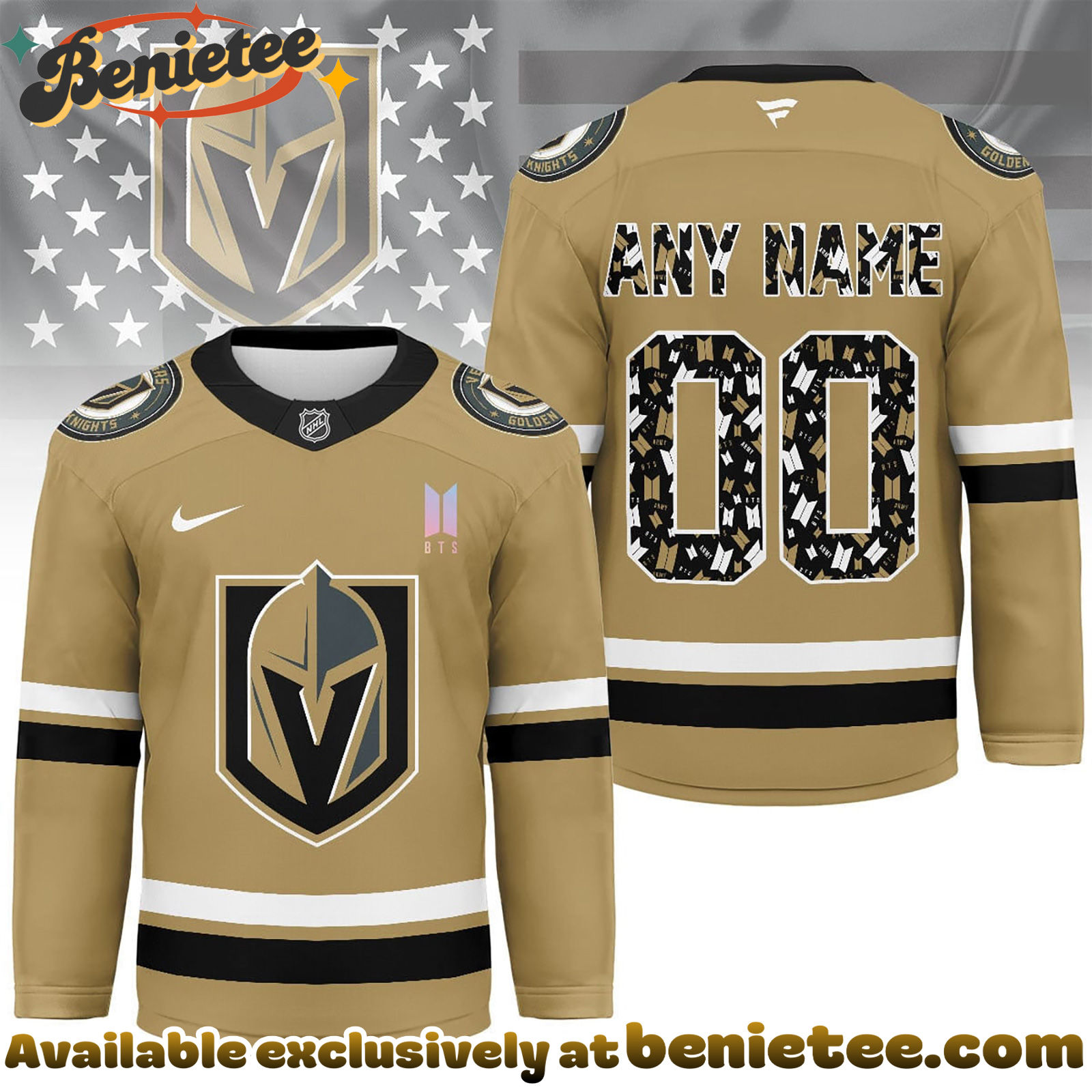 ⚡ Customize your Vegas Golden Knights Premium NHL BTS Fan Jersey now and wear your hockey passion with confidence and style! 🏒🔥