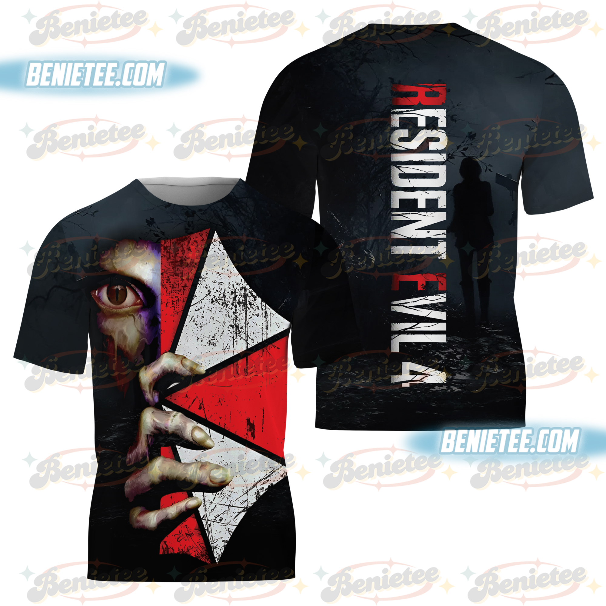 Resident Evil 4 3D Shirt for men with all-over rock band graphic print, soft cotton blend fabric, unisex US fit, available in multiple sizes.