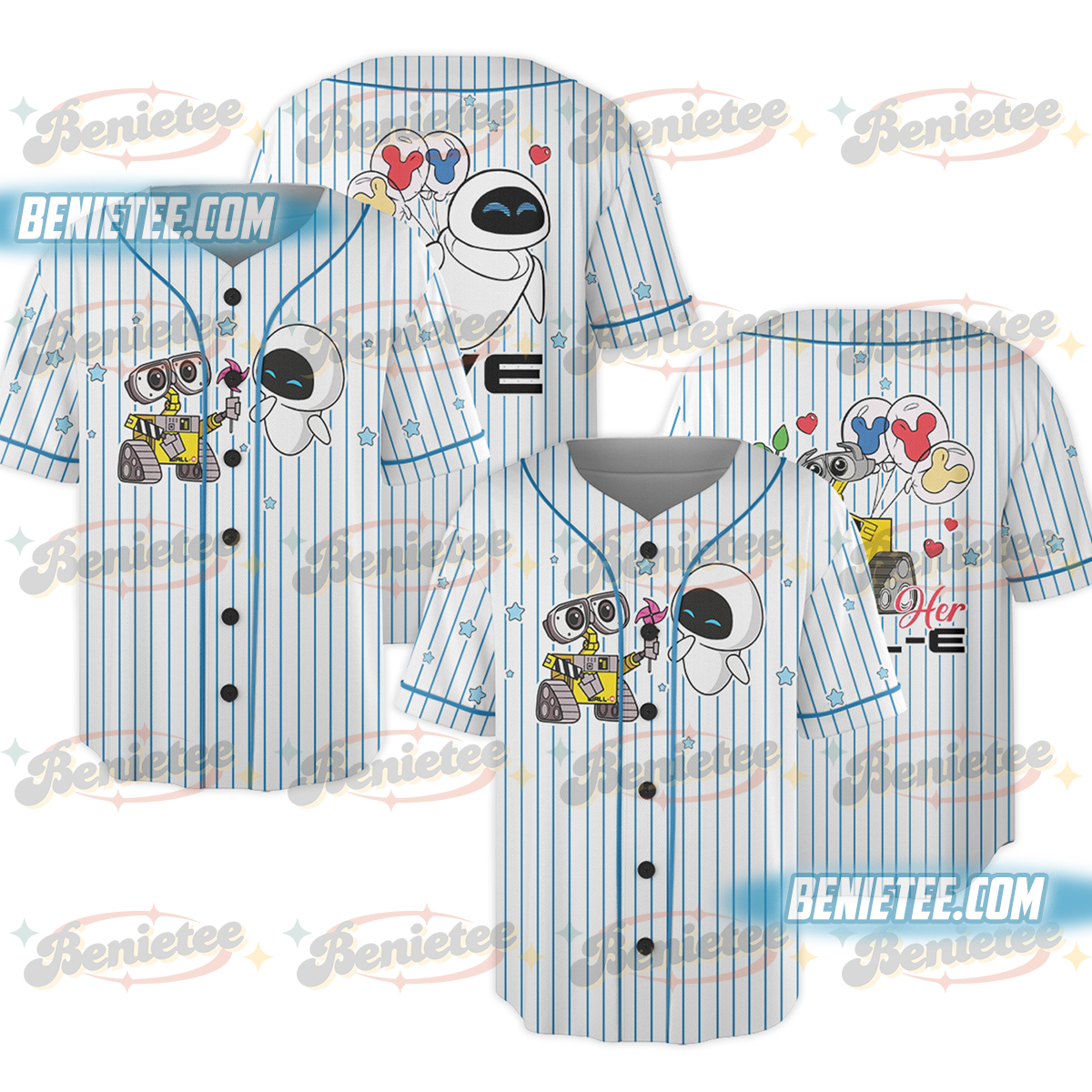 Wall E And Eve Baseball Jersey, Valentines Robot Jersey Shirt, Disney Autobot Football Jersey