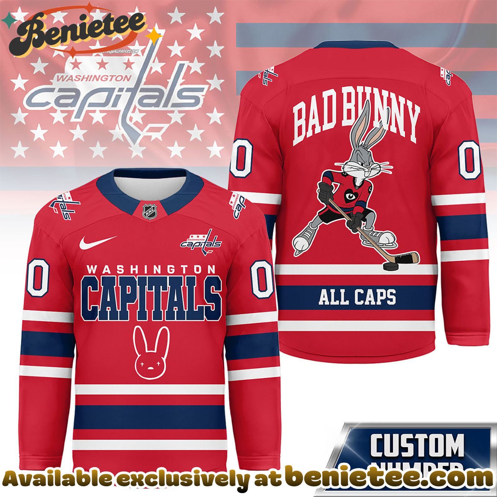 ⚡ Customize your Washington Capitals Premium NHL Bad Bunny Hockey Jersey NY now and wear your hockey passion with confidence and style! 🏒🔥