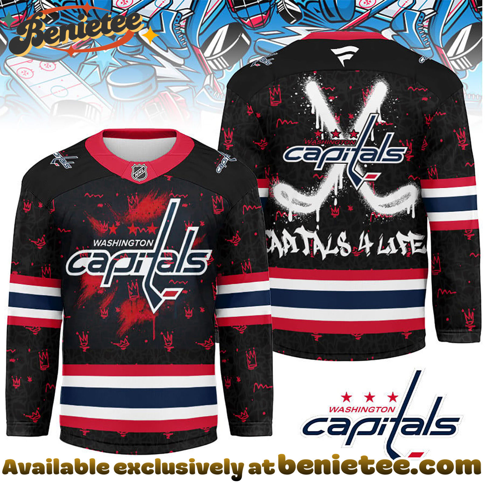 Show Your Washington Capitals Pride with the Premium NHL Graffiti My Team 4 Life Hockey Jersey!
