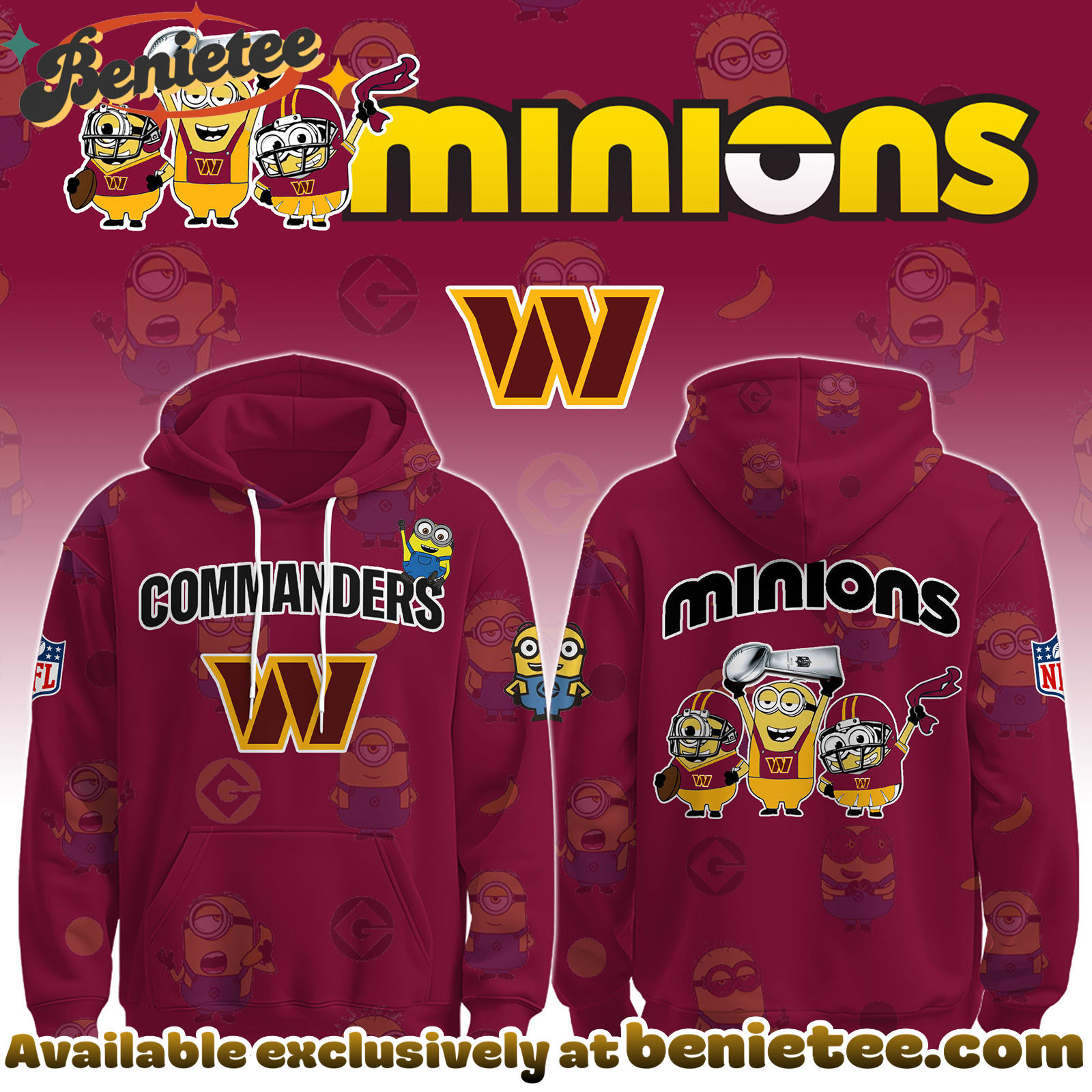 Get ready to unite your love for American football with the playful charm of the Minions! This exclusive Washington Commanders collection brings together the iconic team spirit of the NFL with the hilarious antics of your favorite yellow characters. Whether you’re heading to the game, watching from home, or just want to showcase your fandom, these designs offer a unique and fun way to support your team. Discover the perfect piece to add a touch of personality to your fan gear and celebrate the Washington Commanders in a way you never have before. Don’t miss out on this limited-time collaboration that’s sure to be a touchdown!