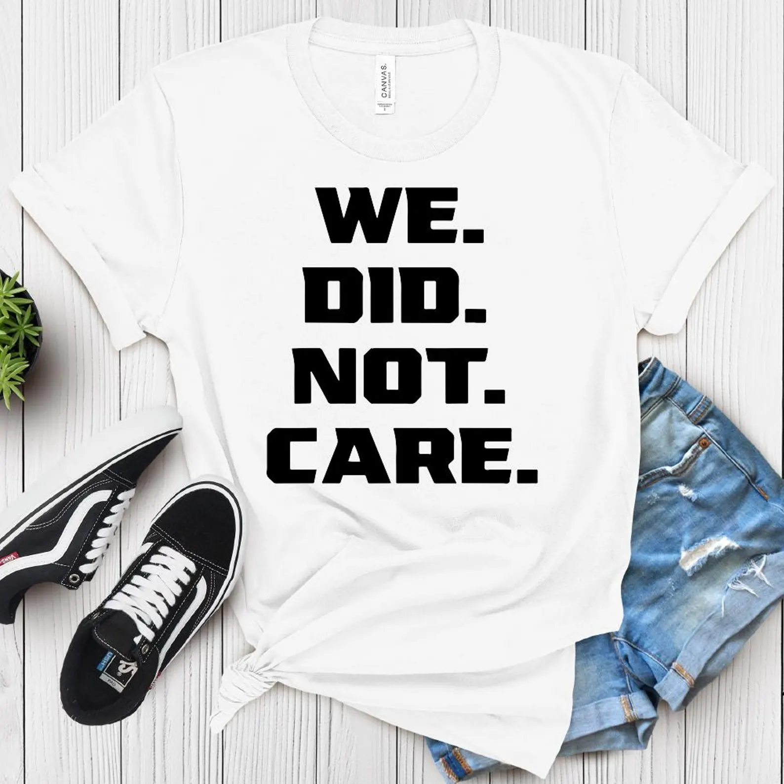 We Did Not Care Shirt, Bold Text Statement Tee, Minimalist Typography T-Shirt