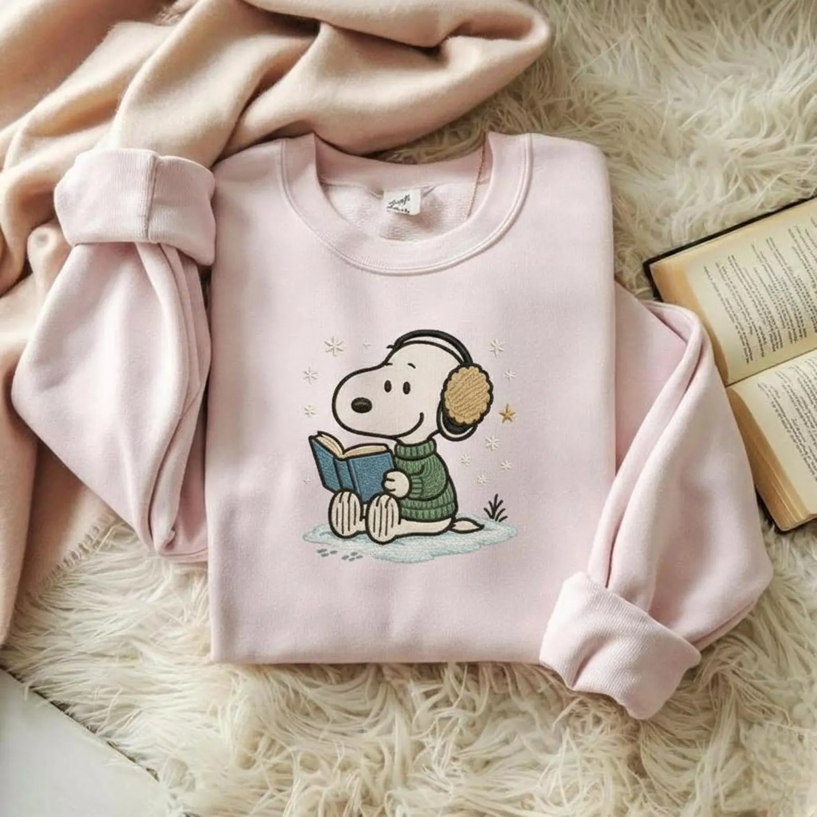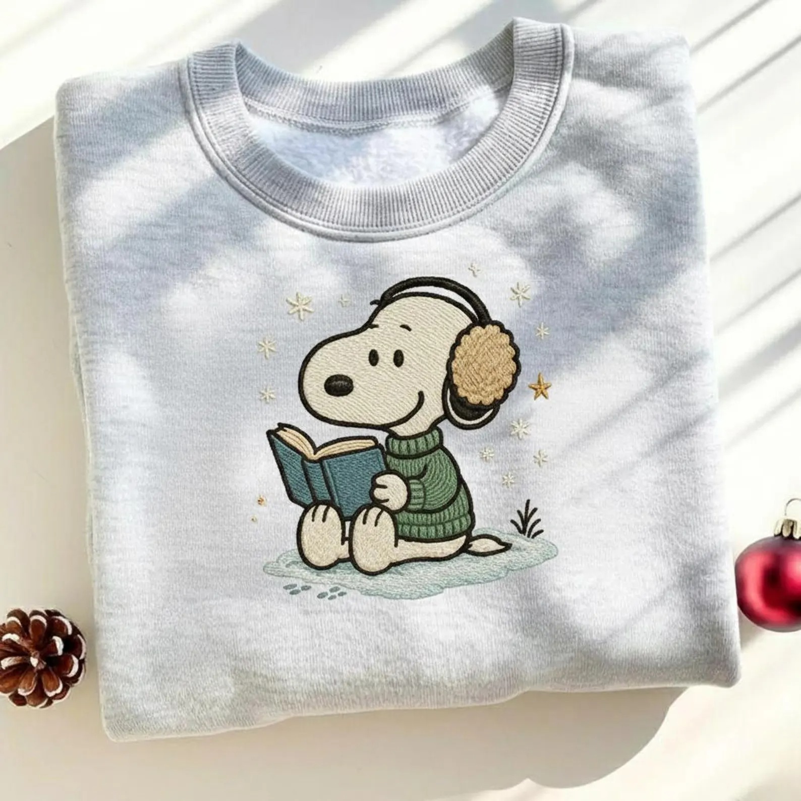 - This item: Winter Snoopy Embroidery Sweatshirt, Cute Reading Snoopy Stitch Design, Cozy Book Lover Gift, Holiday Embroidered Clothing