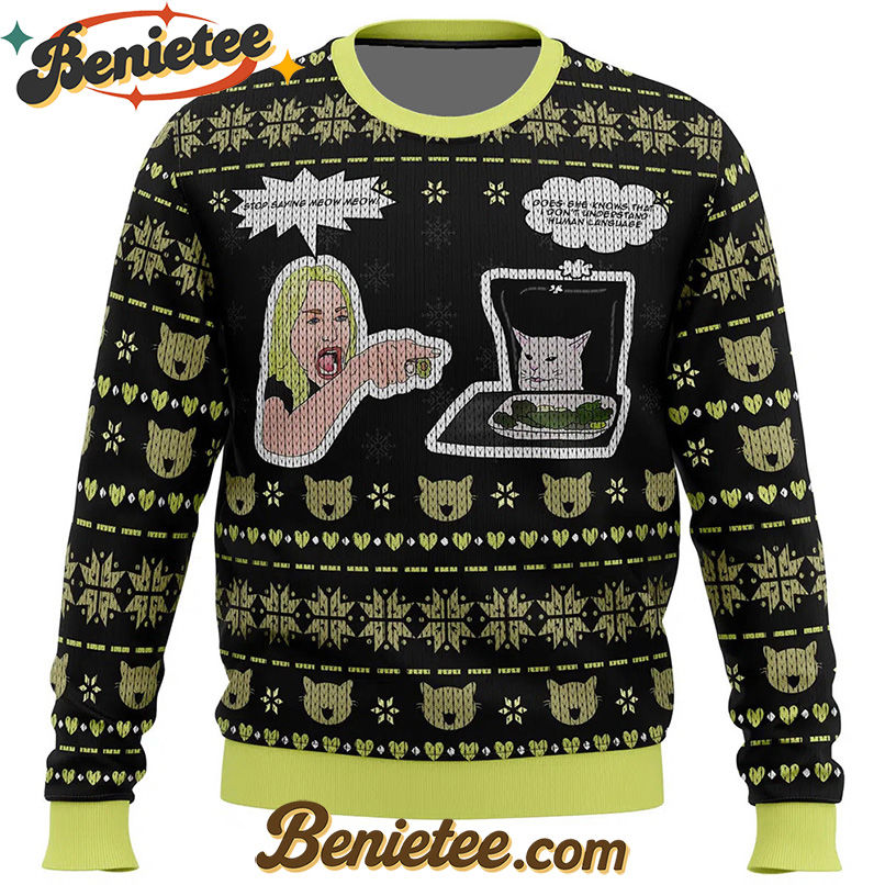 Unleash Your Inner Meme Lord: Shop the Woman Yelling at Cat Christmas Sweater Now!