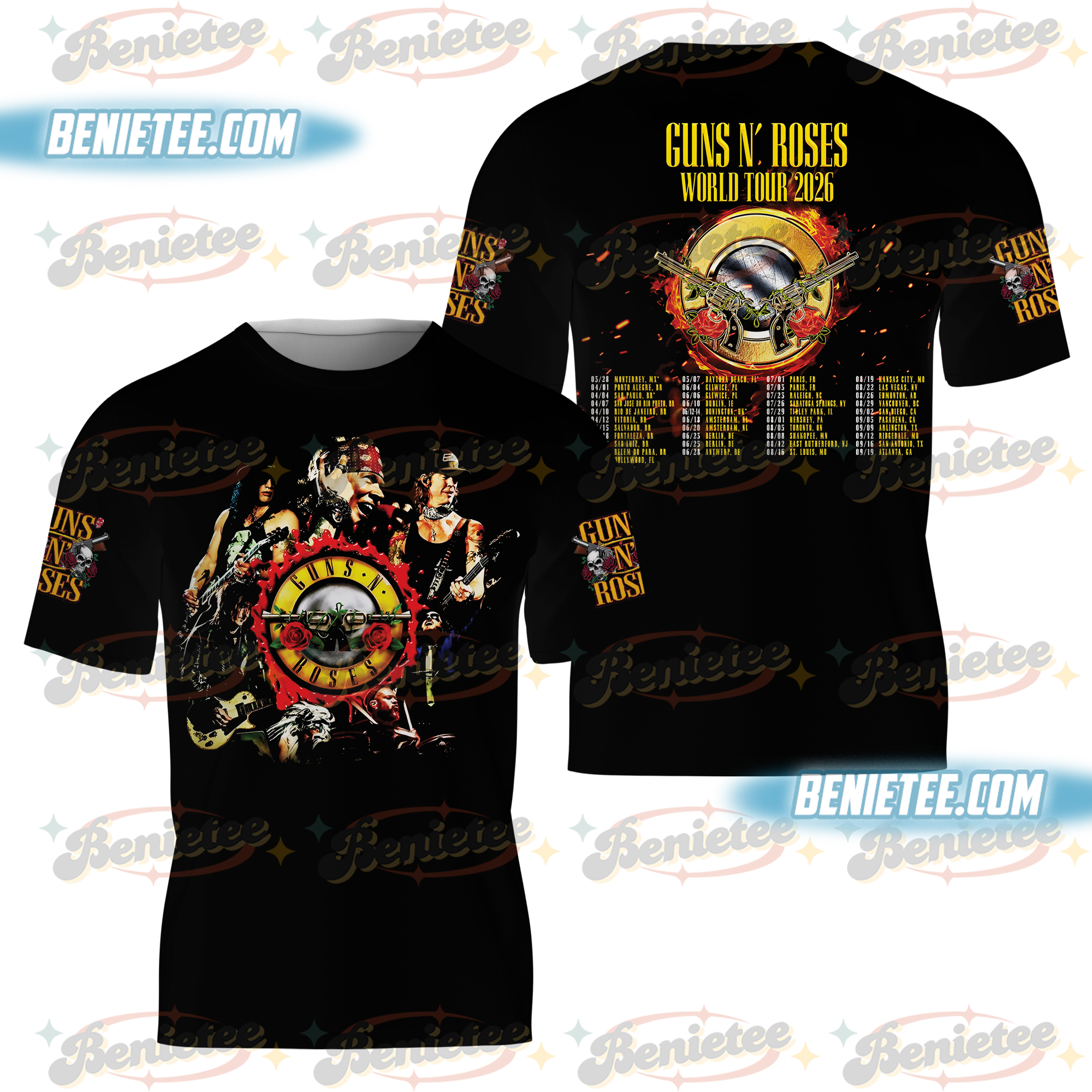 Guns N’ Roses 3D T-Shirt for men with all-over rock band graphic print, soft cotton blend fabric, unisex US fit, available in multiple sizes.