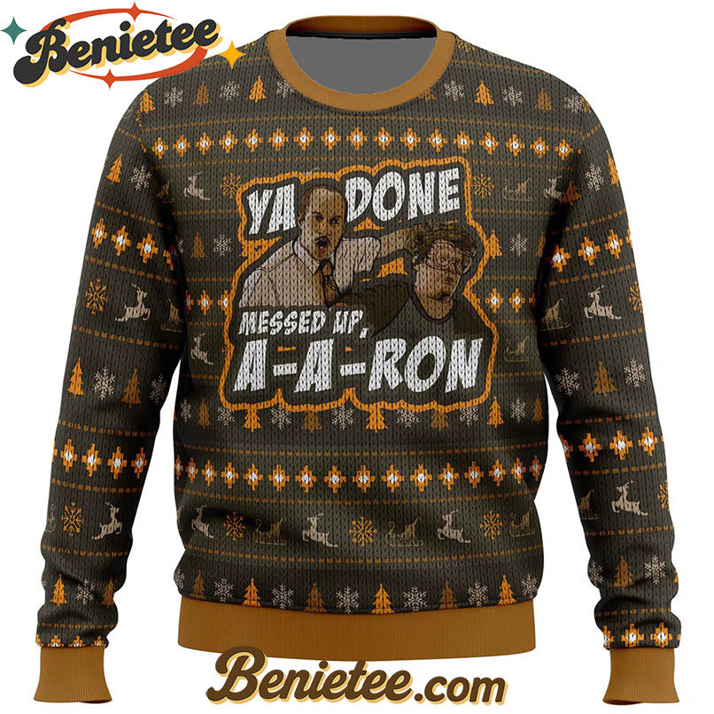 Get ready to spread some serious holiday cheer, or at least a good laugh, with the iconic “Ya Done Messed Up Aaron” Key & Peele Ugly Christmas Sweater. This isn’t just any festive knit; it’s a tribute to one of comedy’s most memorable skits, guaranteed to turn heads and spark conversations at every holiday gathering. Perfect for fans of sketch comedy, pop culture aficionados, or anyone who appreciates a bit of irreverent fun during the most wonderful time of the year. Crafted for comfort and designed to make a statement, this sweater is your ticket to becoming the life of the party. Don’t miss out on owning a piece of comedy gold this season; grab your “Ya Done Messed Up Aaron” Key & Peele Ugly Christmas Sweater today and prepare for an unforgettable holiday!