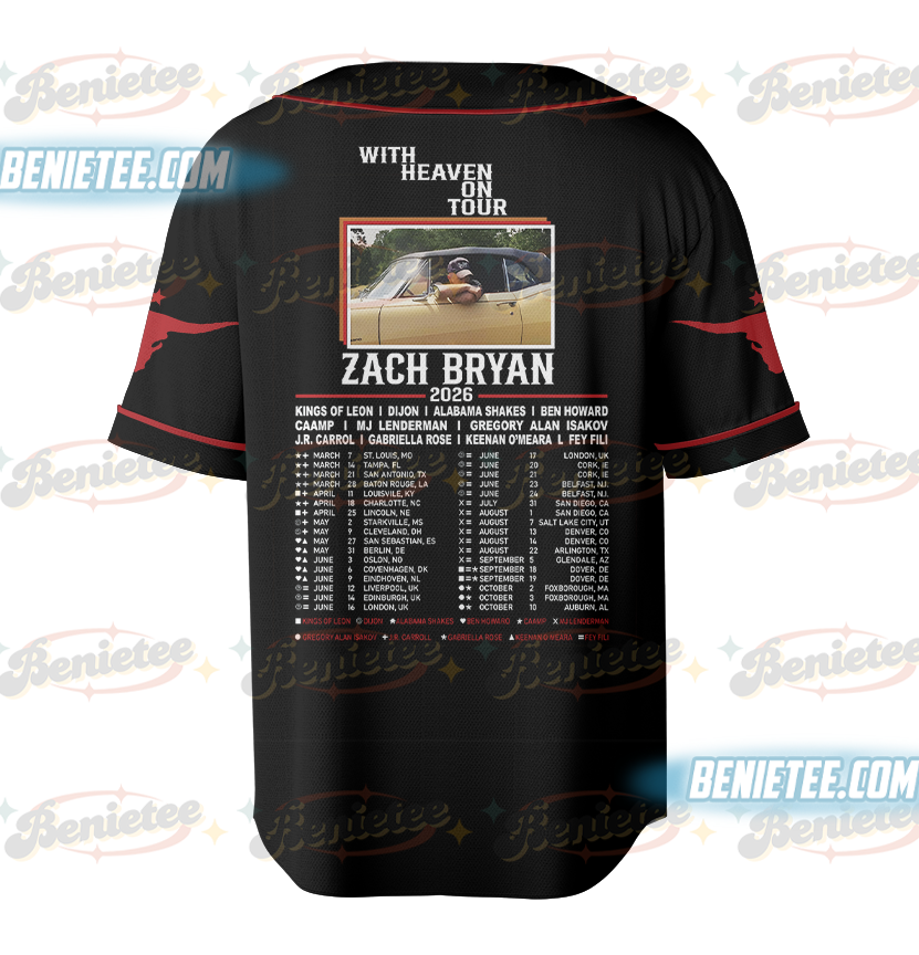 - This item: Zach Bryan With Heaven On Tour 2026 Baseball Jersey, Zach Bryan Country Music Shirt