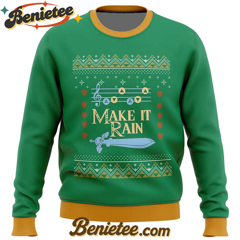 Unleash Your Inner Hero with the Zelda Make it Rain Ugly Christmas Sweater – Shop Now!